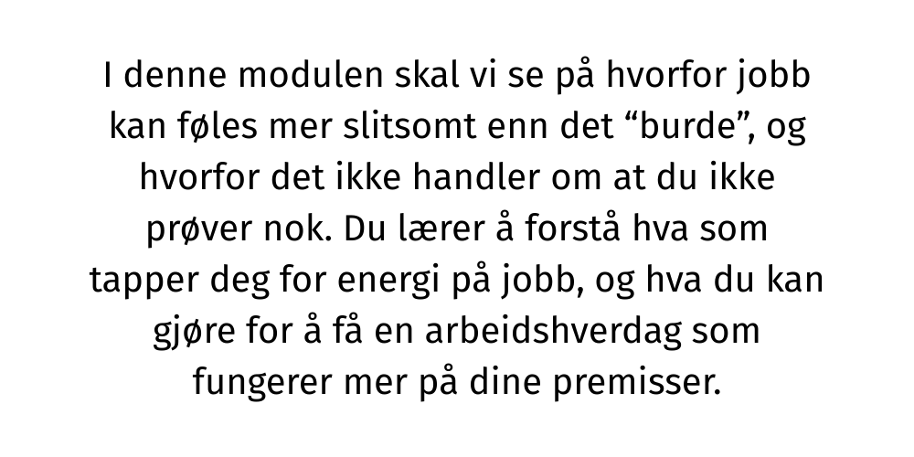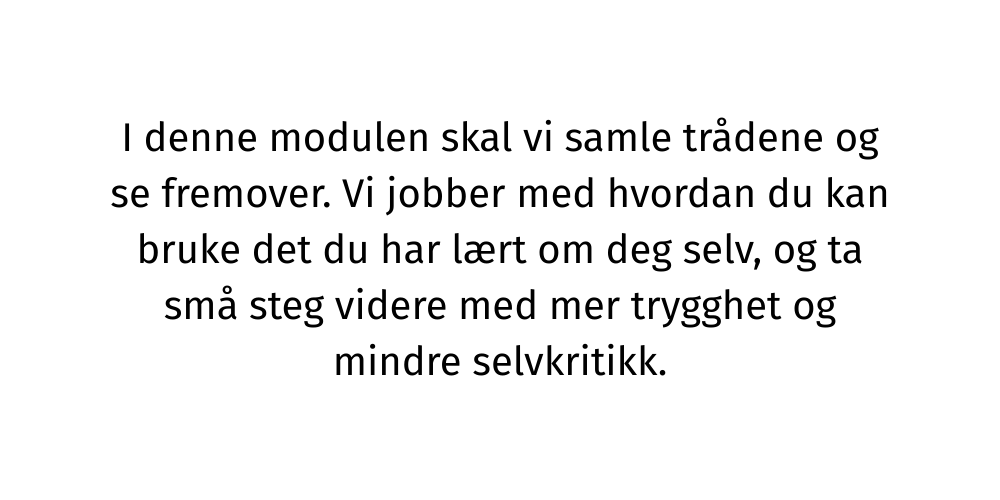 Oppgaver til hver modul så du kan koble temaene til din hverdag og ditt liv et steg av gangen